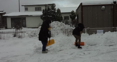 1月に入り、雪が積もったためパワーのある利用者様と職員と駐車場の雪寄せを行いました。