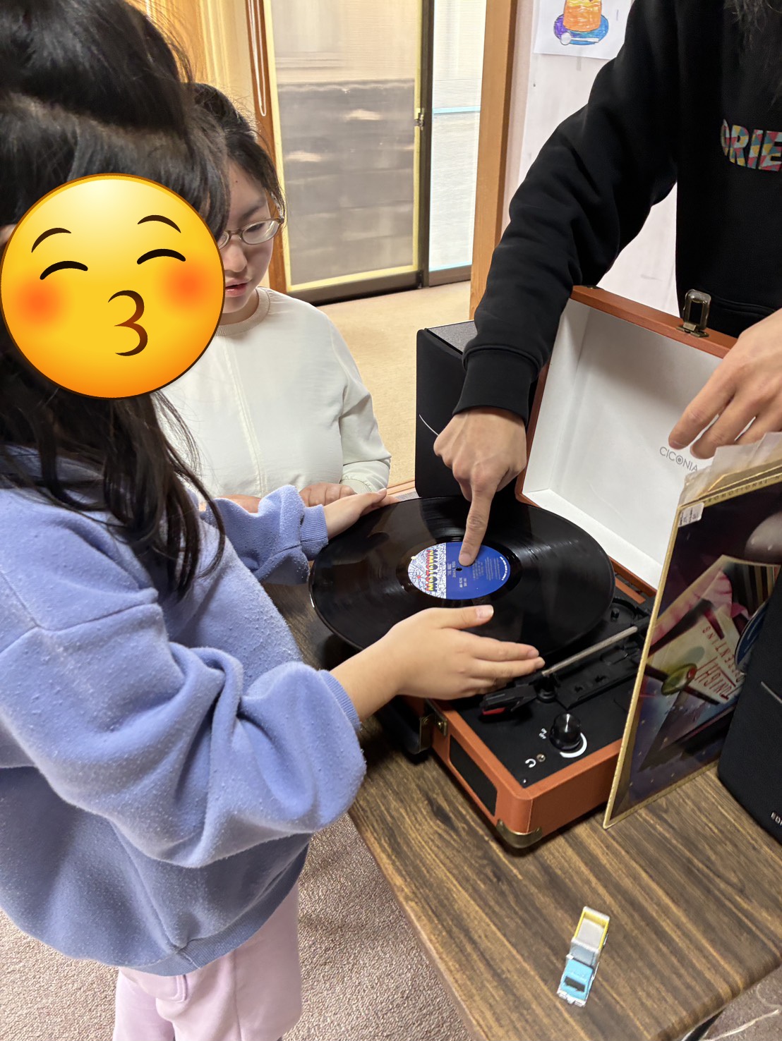 レコード視聴タイムでは、プレーヤーに盤を置く作業に挑戦したお友だちも!