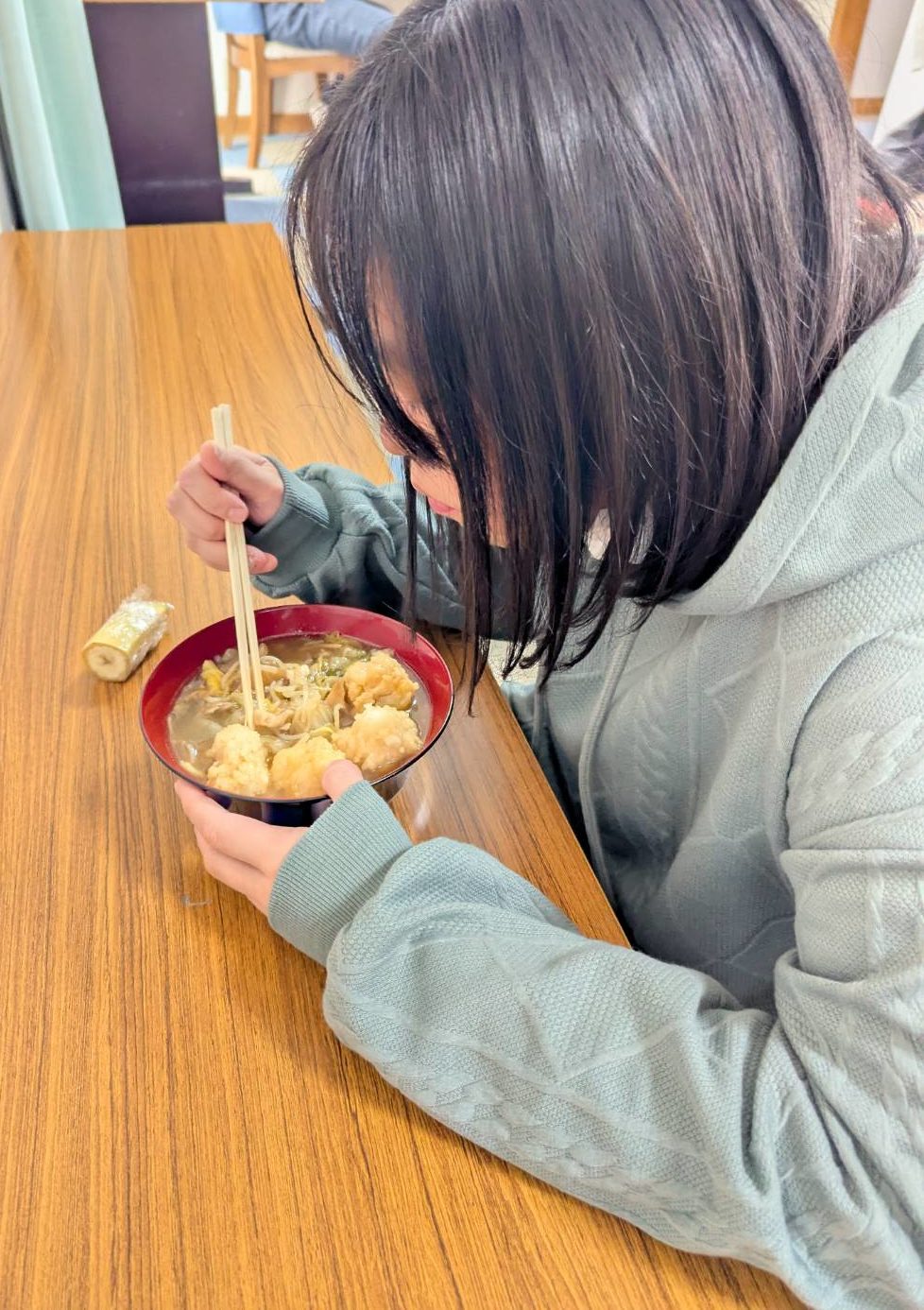 最初はおにぎりくらいの量を取って、「いっぱい取っちゃった😂」と大笑いしていましたが(笑)
