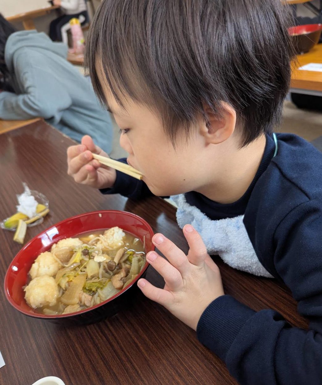 出来上がっただまこ鍋はお昼にいただきました。