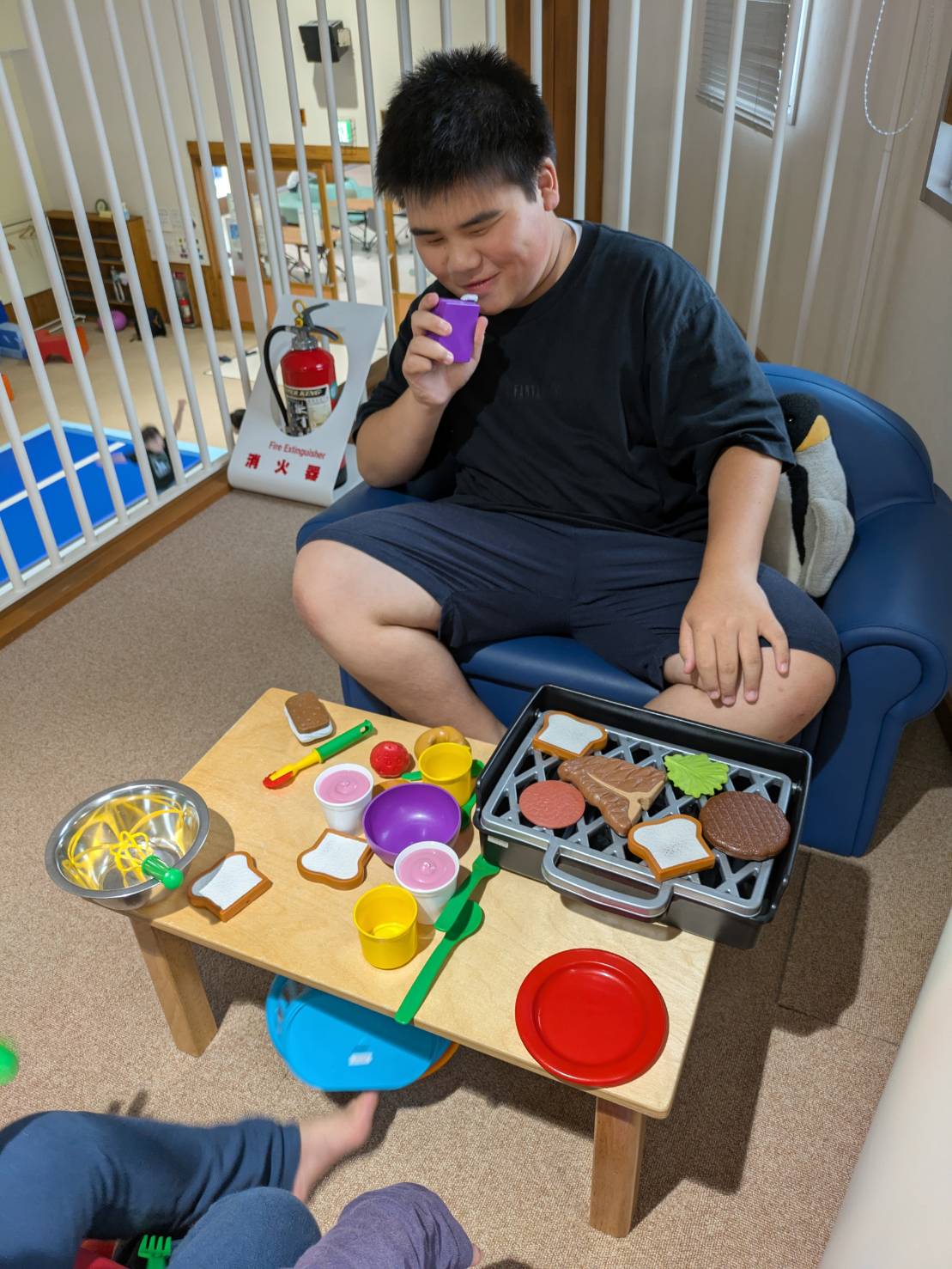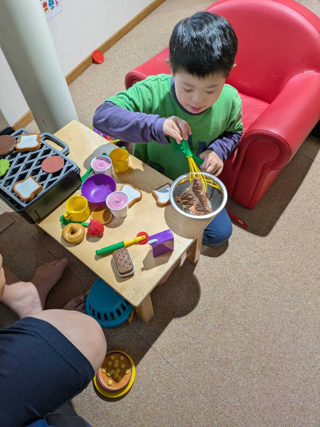 大きい遊具のみでなく、おままごとの玩具も豊富にあって、ご飯の準備から楽しんで遊んでいました🍳