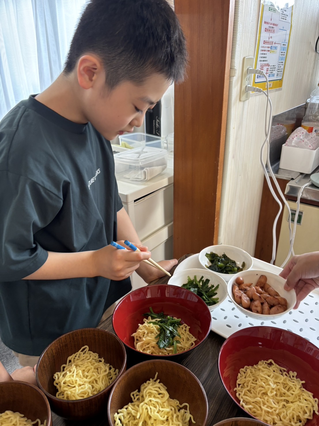 夏休み期間のクッキング第一弾は、ラーメン餃子定食🍜🥟✨