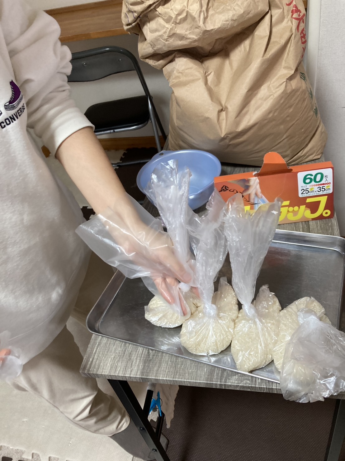 こちらは米・玄米を1合ごとに袋に分ける作業🌾
