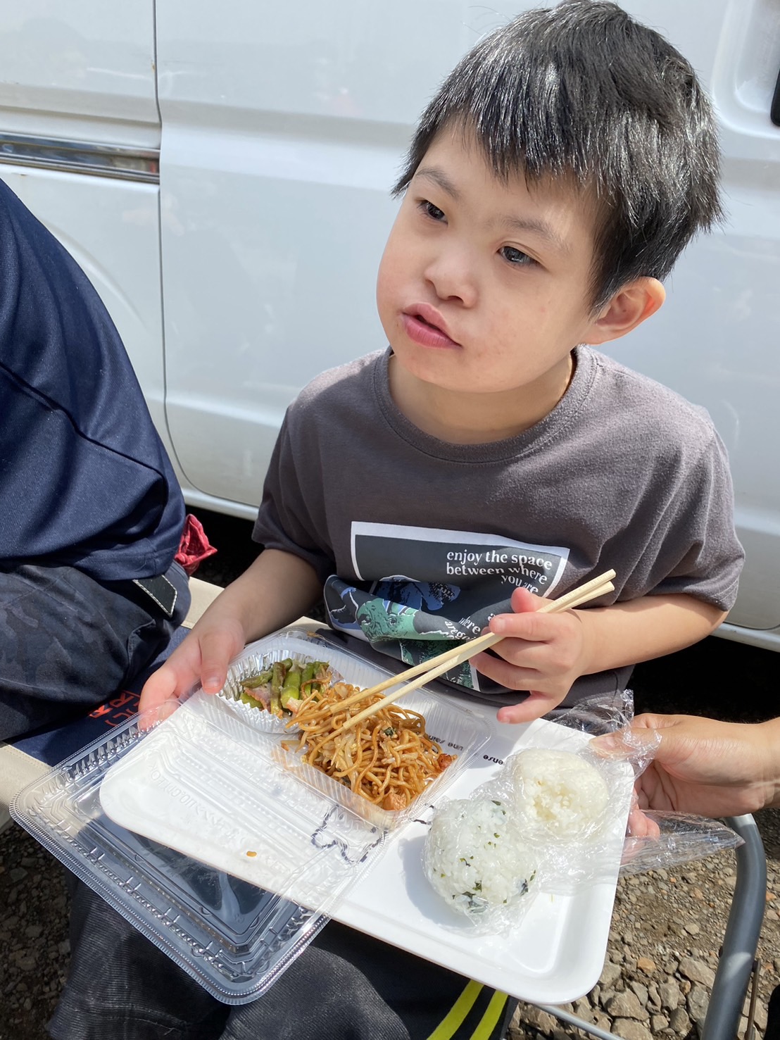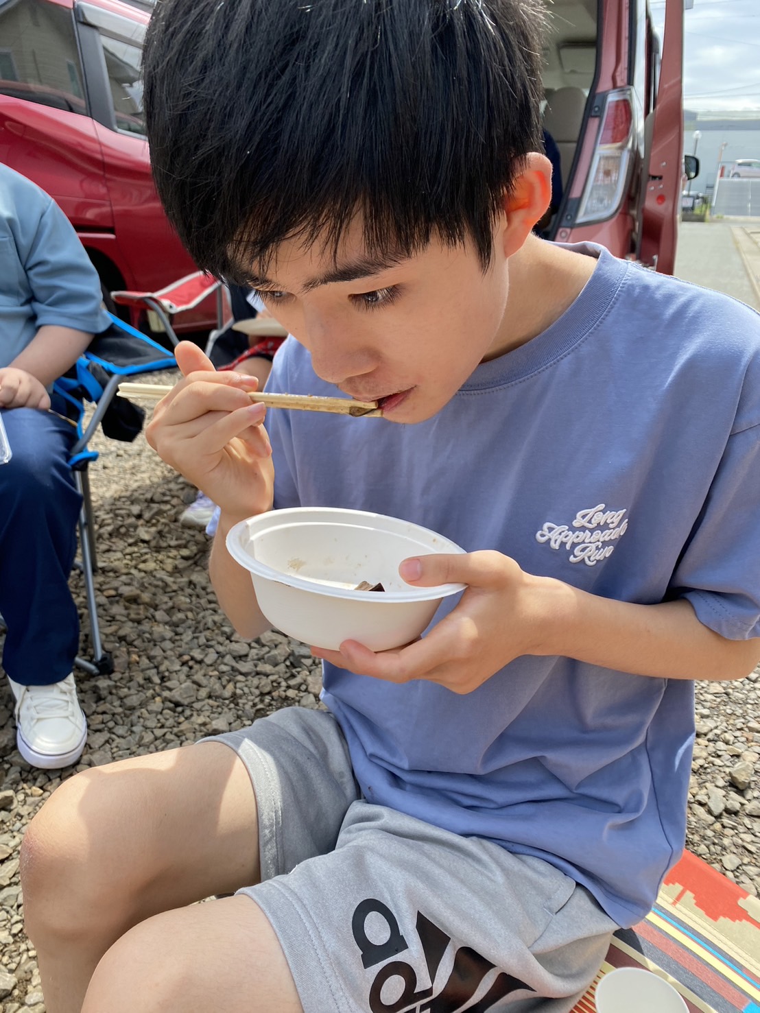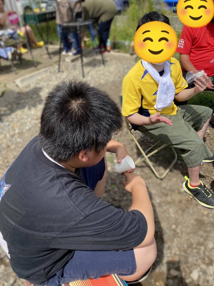 外で肉や野菜等を焼いていた子が中にいる利用者にも出来上がったものを勧めてくれていました🧑🤝🧑