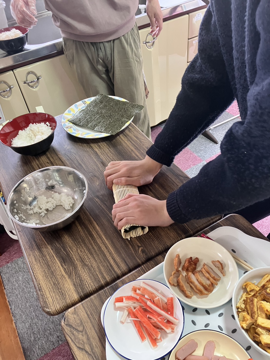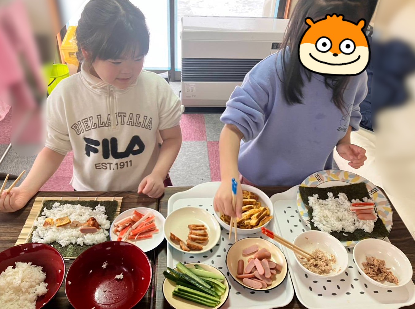 恵方巻づくり 2026.02.14 hoopsii ご無沙汰しております! 時差投稿になります🙏 1月31日㈯の行事は、恵方巻づくりのクッキングでした👹 各々好きな具材をチョイスし、自分の分は自分で作りました😊 完成した恵方巻をガブリ!!! 優勝は…… 断面まっしろな恵方巻を作ったお友達です🎊 具は別皿で食べました🤗 なるほど! そういう食べ方もあるのですね😸