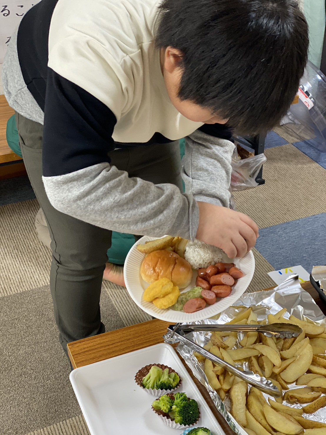 うれしそうに食べたいものをお皿に乗せていきます🍽