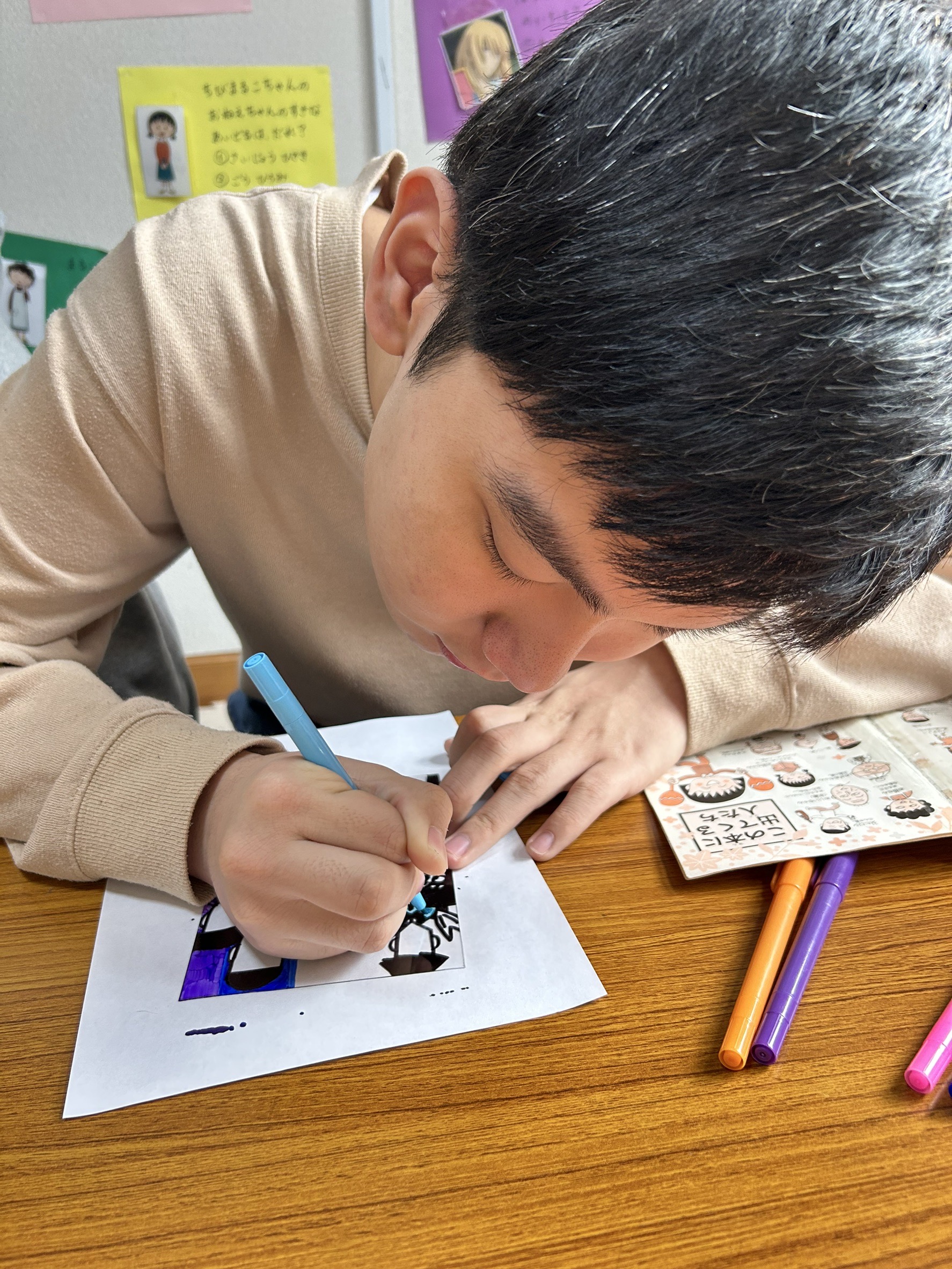 また、就労に向けた作業も行っています。ビーズでアクセサリーを作ったり、プラ板を作ってみたり、楽しみながら少し細かい作業に取り組みます。集中して行う子や、完成したことを喜び、嬉しそうな顔を浮かべる子もいます。こちらは年齢問わず行っており、年上の利用者と一緒にできて嬉しそうにしている子が多いです!