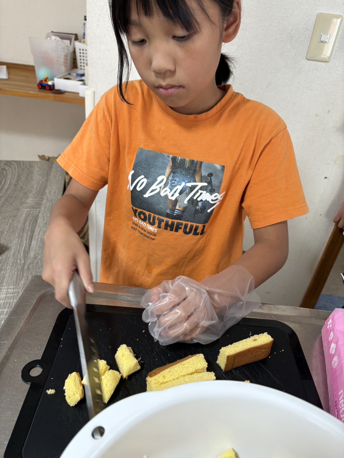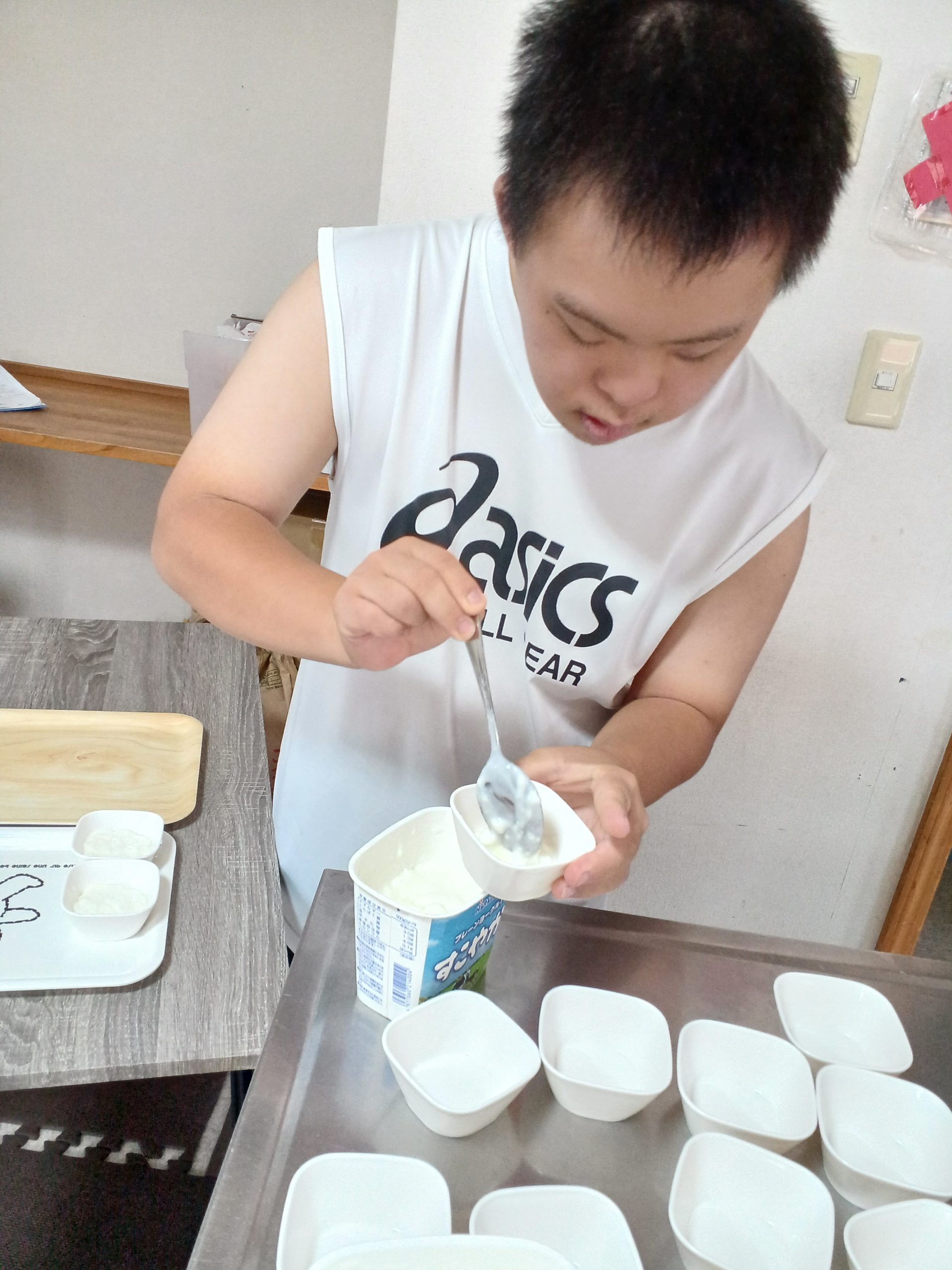 利用者のみなさんに提供する昼食やおやつは事業所で作っていますが、利用者の子がよくお手伝いしてくれます。