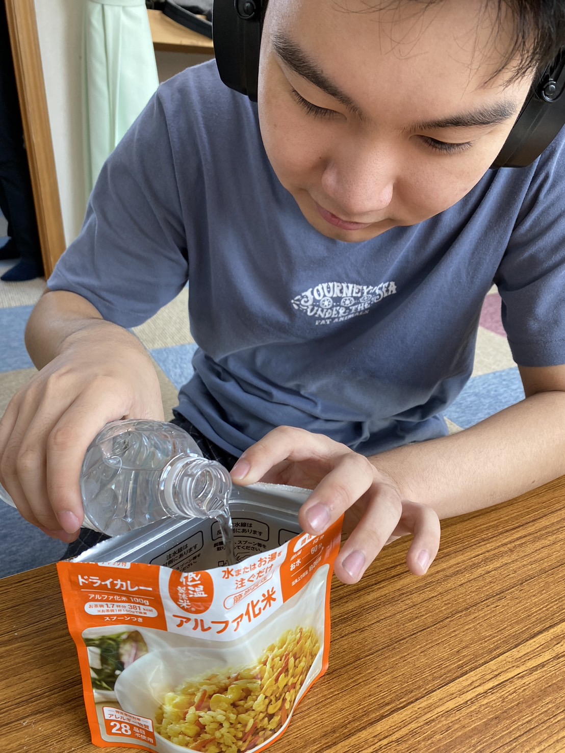非常食の準備も職員と一緒に、なるべく自分でやってみました。