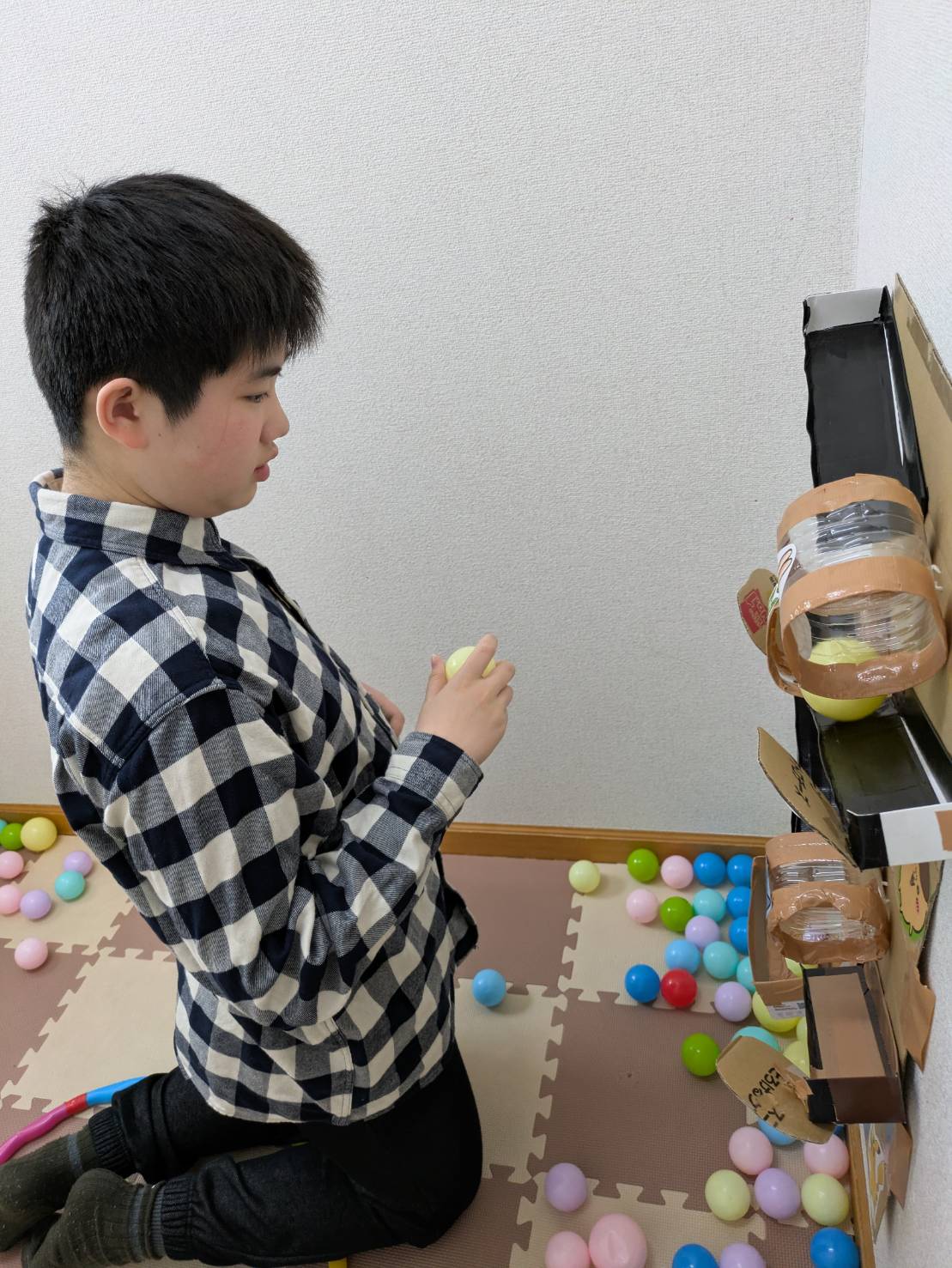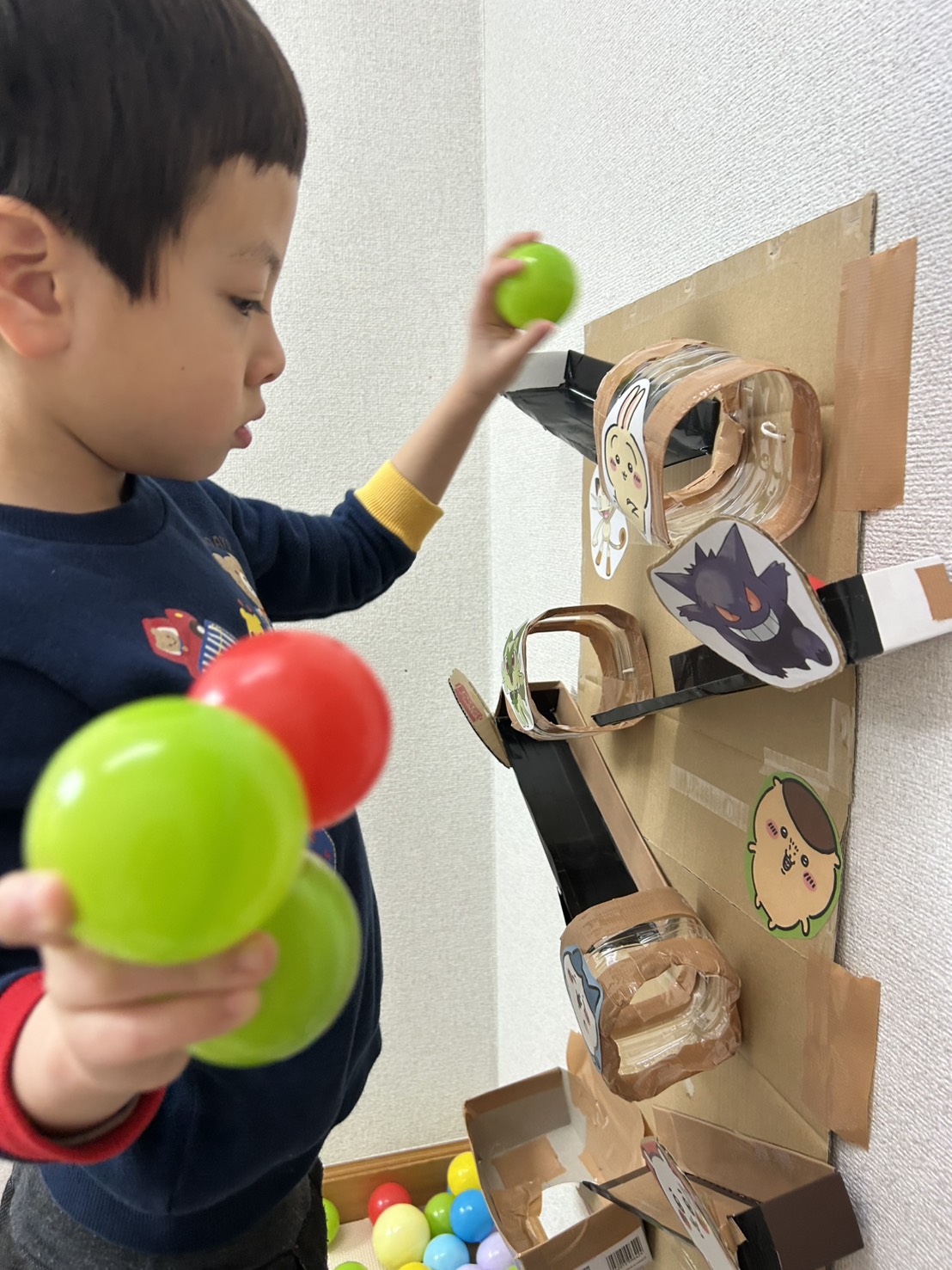 ボールプールの部屋に新しく手作りスロープトイを設置!