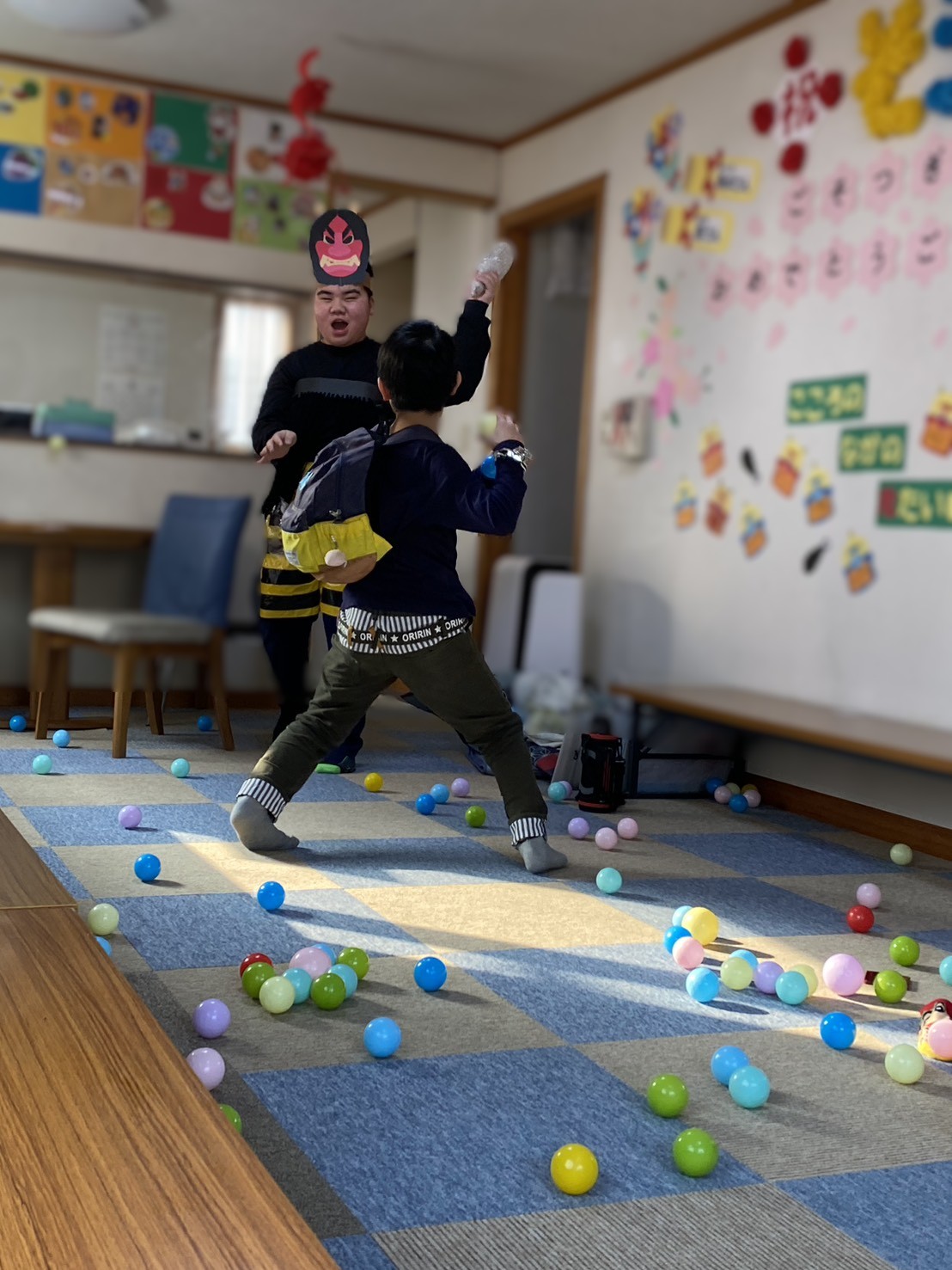 鬼を倒した後もまだまだ豆まきをしたかった様子のみんなでした☺