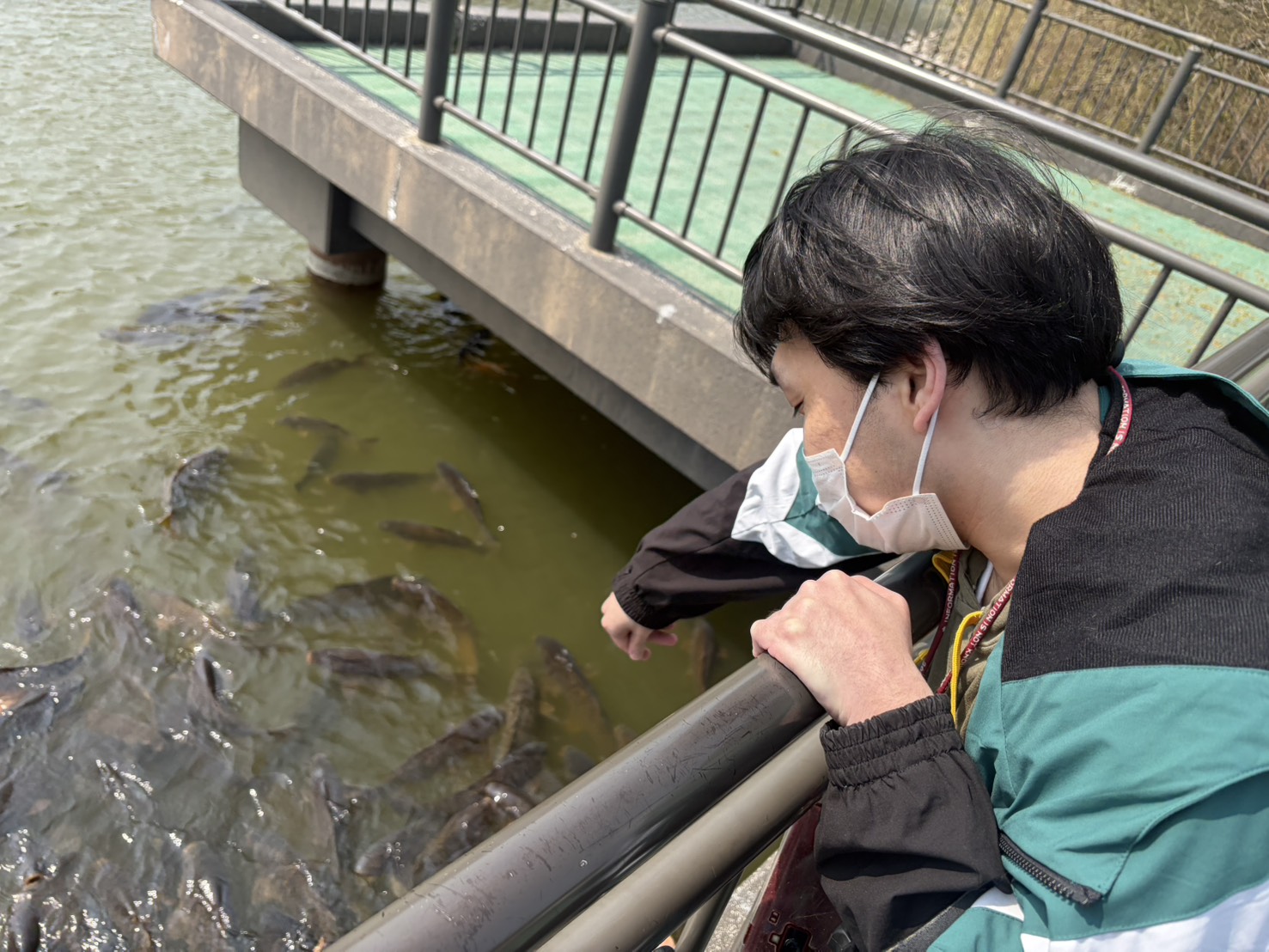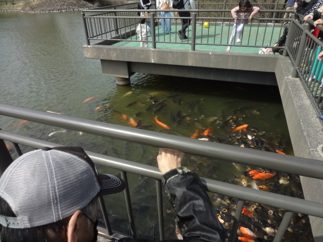 到着してから最初に鯉のエサやりへ🐠