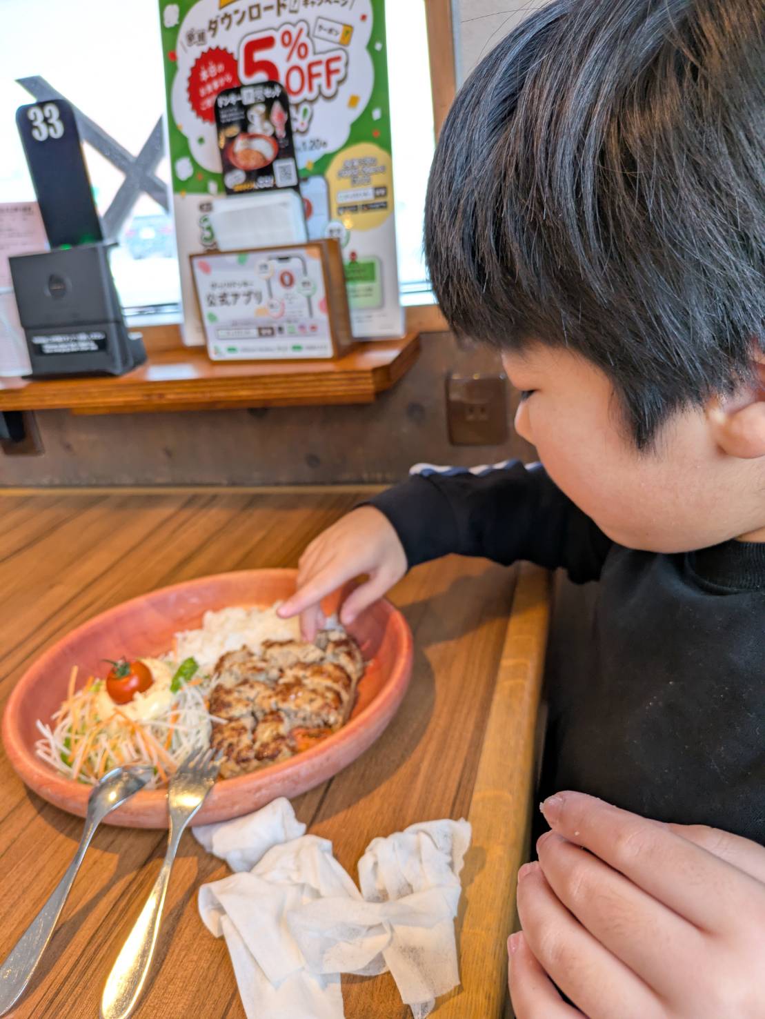 席に案内していただき、メニュー表やタブレットを見てわくわくした表情を浮かべていました✨