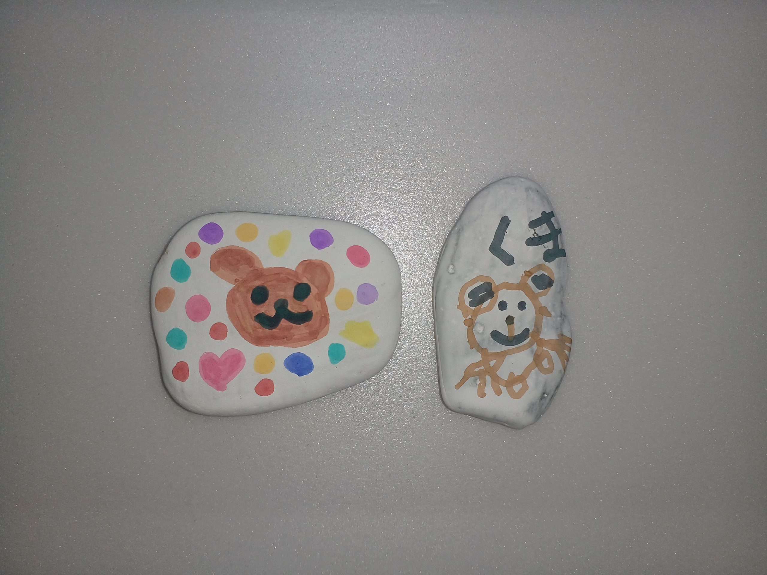ストーンアート作りをしました! はじめは「石に描くの?」といった様子でしたが(笑) いざ始めて見るとすごい集中している様子… 真剣な顔で絵を描いたり、色を塗ったりしていきます🎨 完成すると嬉しそうな顔を浮かべていました😊 完成したみんなの作品はこちら! 同じストーンアート…
